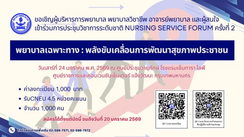 ** สำหรับพยาบาลแบบรายบุคคลที่สนใจไม่ต้องลงทะเบียนล่วงหน้าสามารถเข้าร่วมประชุมได้ในวันอังคารที่ 24 กันยายน พ.ศ. 2567 เวลา 12.00 น. หรือผู้เข้าร่วมประชุมครบตามจำนวน 1,000 คน ผ่านระบบ Zoom online Meeting