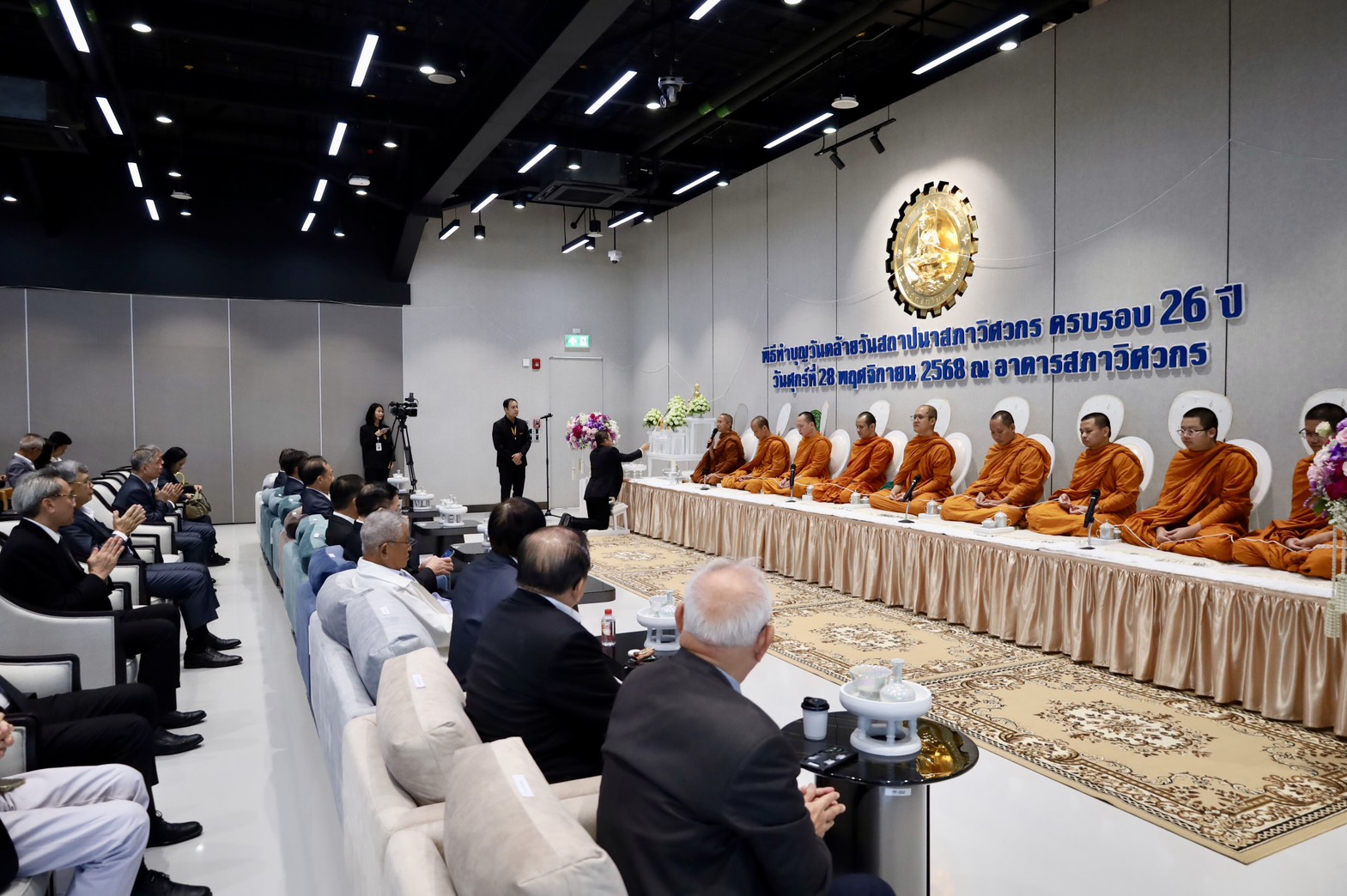 เมื่อวันที่ 28 พฤศจิกายน 2568 รองศาสตราจารย์ ดร.สุจิตรา เหลืองอมรเลิศ นายกสภาการพยาบาล พร้อมด้วยผู้ช่วยเลขาธิการสภาการพยาบาล นักวิชาการวิชาชีพการพยาบาล และเจ้าหน้าที่สภาการพยาบาล ร่วมพิธีทำบุญเลี้ยงพระ เนื่องในโอกาสวันคล้ายวันสถาปนาสภาวิศวกร ครบรอบ 26 ปี และมอบเงินร่วมทำบุญ ในโอกาสดังกล่าว ให้กับ นายกิตติพงษ์ วีระโพธิ์ประสิทธิ์ นายกสภาวิศวกร ณ อาคารที่ทำการสภาวิศวกร (ซอยลาดพร้าว 54) กรุงเทพมหานครฯ