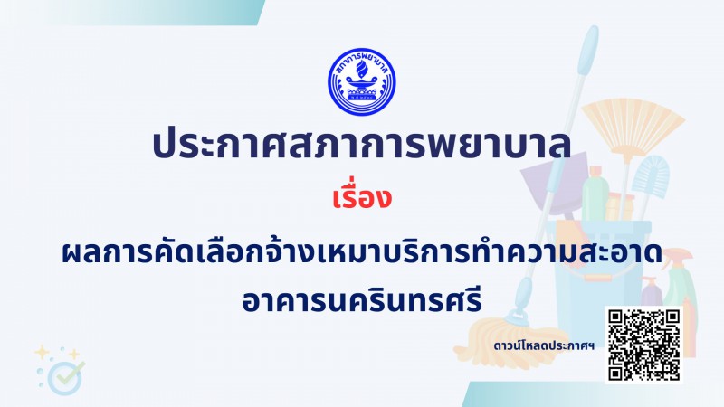 ประกาศสภาการพยาบาล เรื่อง ผลการคัดเลือกจ้างเหมาบริการทำความสะอาด อาคารนครินทรศรี