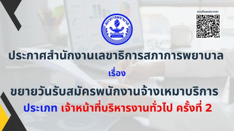 ประกาศสำนักงานเลขาธิการสภาการพยาบาล เรื่อง ขยายวันรับสมัครพนักงานจ้างเหมาบริการ ประเภท เจ้าหน้าที่บริหารงานทั่วไป ครั้งที่ 2