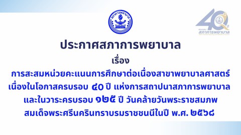 การสะสมหน่วยคะแนนการศึกษาต่อเนื่องสาขาพยาบาลศาสตร์ เนื่องในโอกาสครบรอบ 40 ปี แห่งการสถาปนาสภาการพยาบาล ฯ
