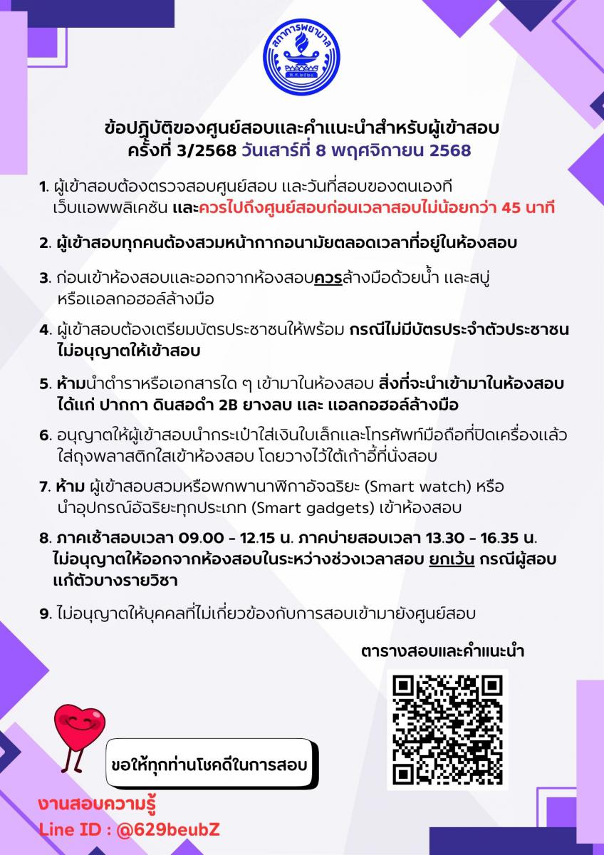 ข้อปฏิบัติและคำแนะนำในการสอบความรู้เพื่อขึ้นทะเบียน ครั้งที่ 3/2568