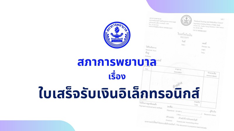 สภาการพยาบาลแจ้งการออกใบเสร็จรับเงินในรูปแบบ ใบเสร็จรับเงินอิเล็กทรอนิกส์ เพื่อยกระดับคุณภาพงานบริการให้ทันสมัย สะดวก และมีประสิทธิภาพมากยิ่งขึ้น ใบเสร็จรับเงินอิเล็กทรอนิกส์ นี้จะเป็นลักษณะไฟล์ PDF ทั้ง ภาษาไทยและภาษาอังกฤษ พร้อมลายมือชื่ออิเล็กทรอนิกส์ของเจ้าหน้าที่ผู้รับเงินอย่างถูกต้องตามมาตรฐาน