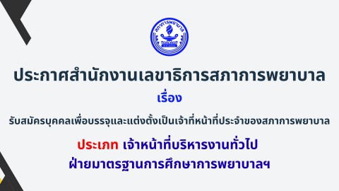 รับสมัครบุคคลเพื่อบรรจุและแต่งตั้งเป็นเจ้าที่หน้าที่ประจำของสภาการรพยาบาล ประเภท เจ้าหน้าที่บริหารงานทั่วไป ฝ่ายมาตรฐานการศึกษาการพยาบาลฯ